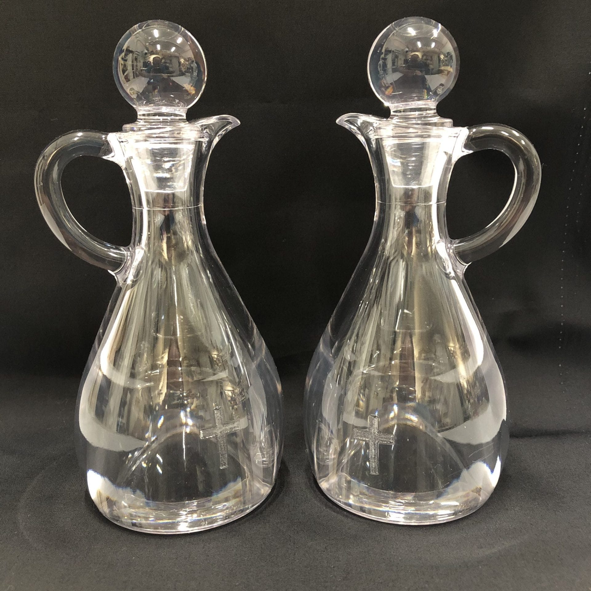 Pair of acrylic bottles with etched designs – 13cm tall.