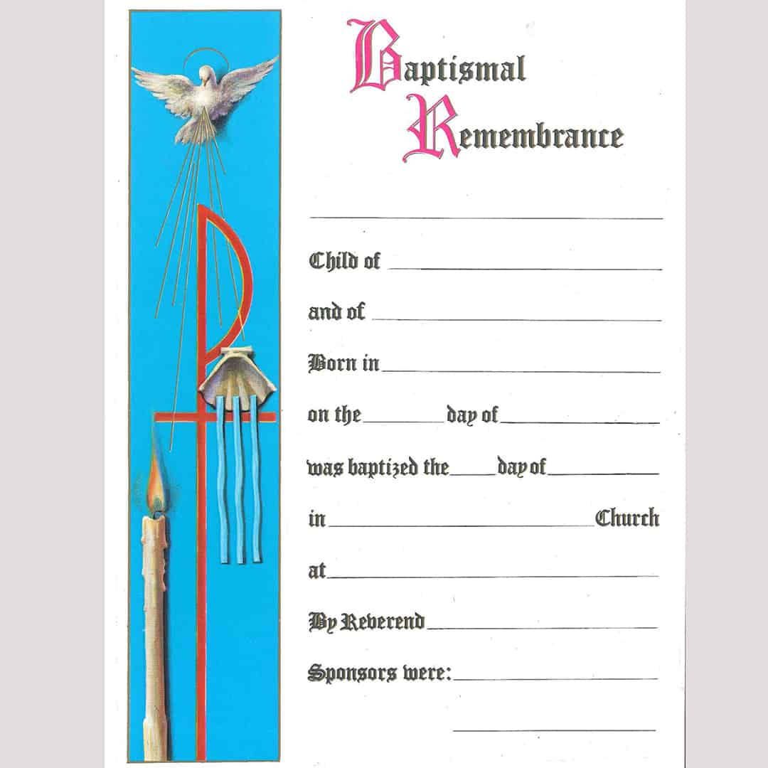 Baptism Certificate Design #2. This certificate is available in two sizes (please see rekated webstore item for large certificate). This small size measures 15 x 20cm. Available in: Pack of 10 – $19.50 Pack of 100 – $180.00