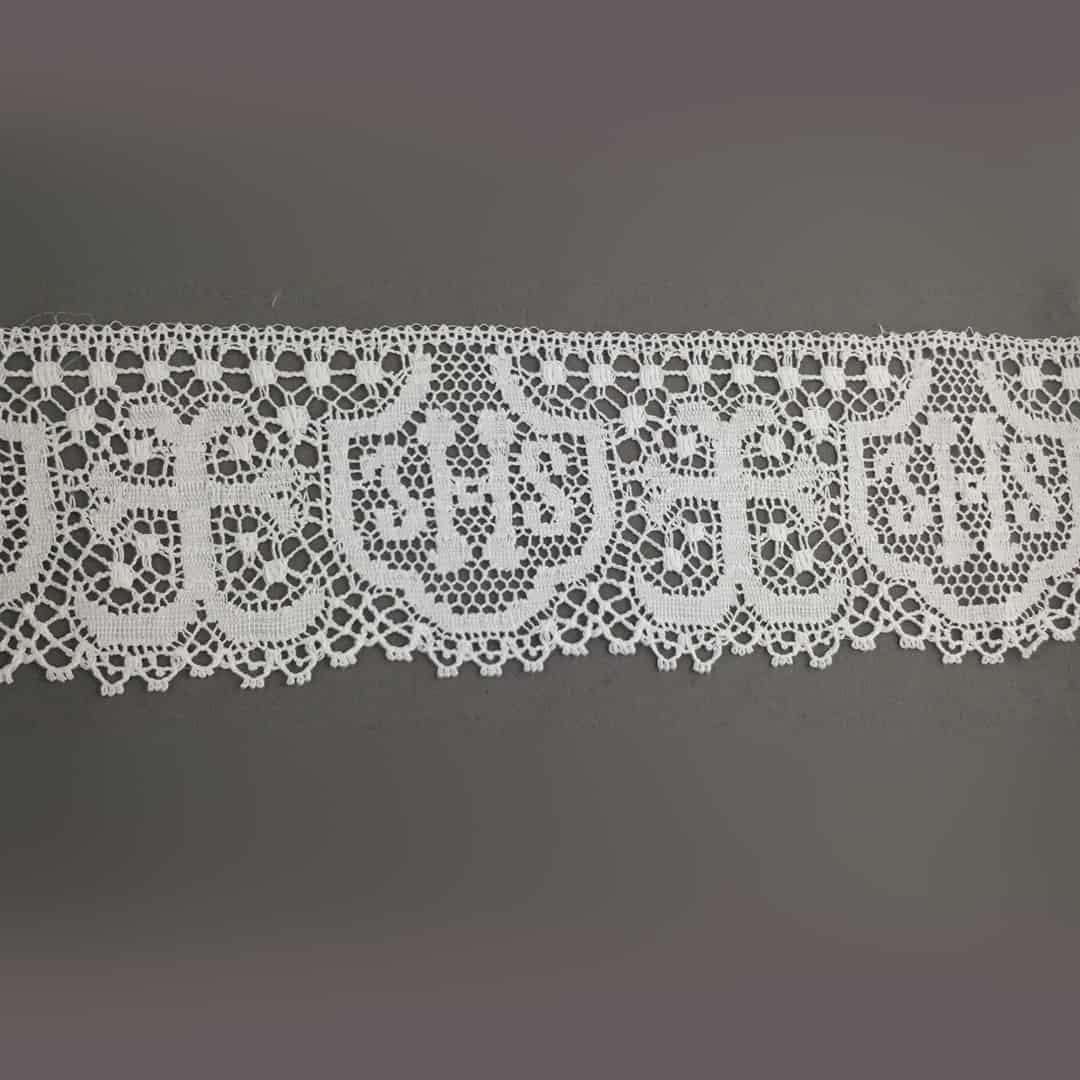 Border Lace #977 – 3″ / 8 cm. (Price given per metre. This online shop only allows purchases by the metre, if you would like to buy a part of a metre, please call 0292332268.)