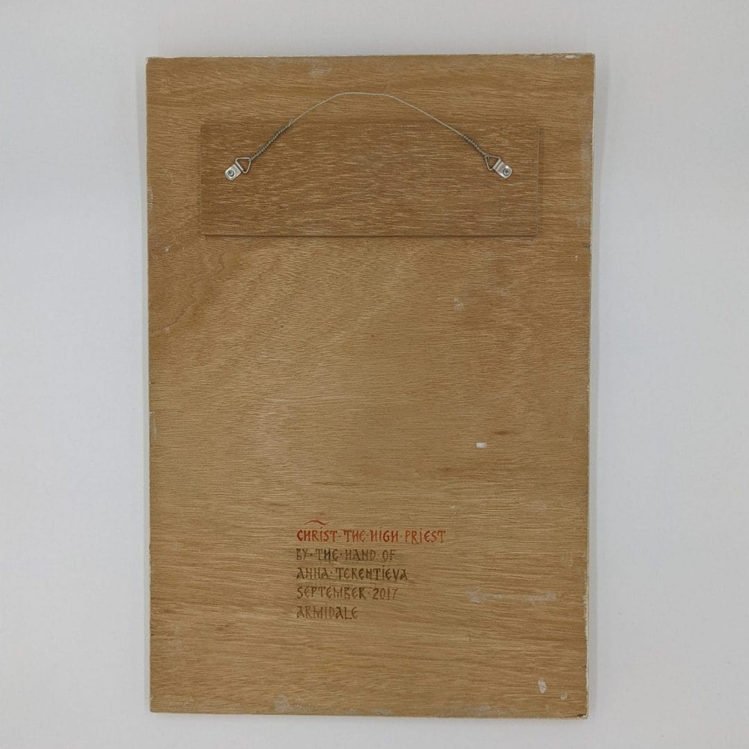 The icon, during the first year and after, should be kept in dry room, away from open windows and direct sunlight. It can be dusted with fine, soft, dry brush or soft feather duster. Never wipe or rub the icon, especially with something wet; wetness can damage the colours. The surface also needs to be protected from accidental scratches; with time, however, its’ resilience will continue growing. A certain unevenness of sheen is typical of icons due to the unevenness of the layers of natural pigments and their different ability to absorb varnish.