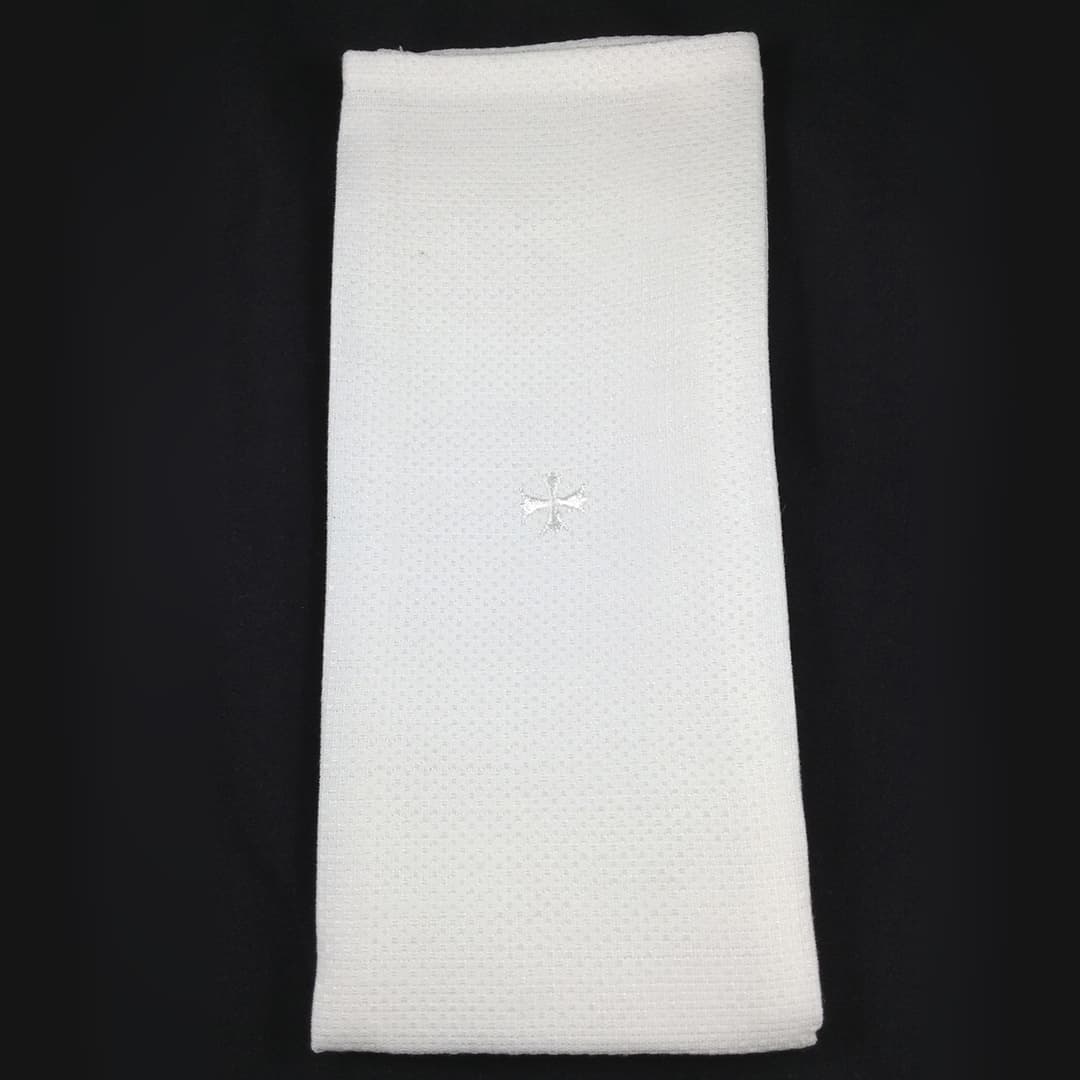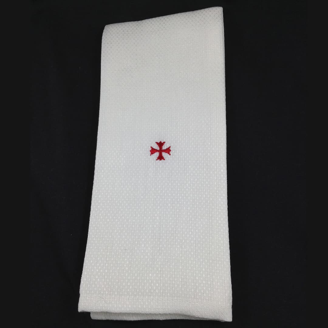 Lavabo Towel made from Pure Irish Linen Huckaback-weave, approximately 46x31cm. The Red Cross option is available from stock, while the white cross option is made to order with a leadtime of 6 weeks.