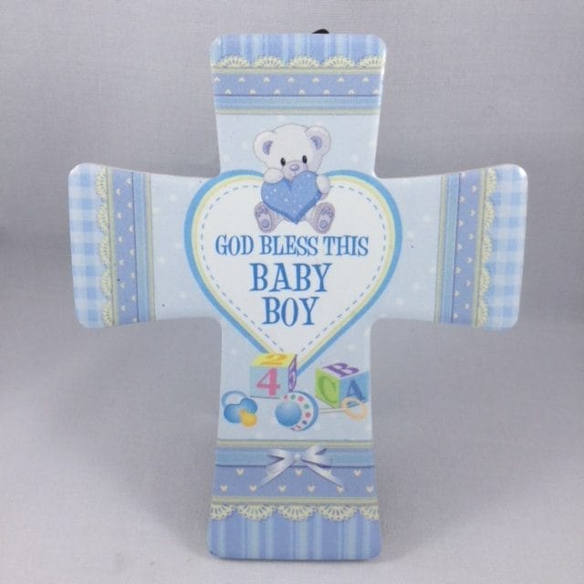 Porcelain Cross- For Boy. Dimensions 14.5cm x 12cm. Dimensions boxed 16.5cm x 14cm.