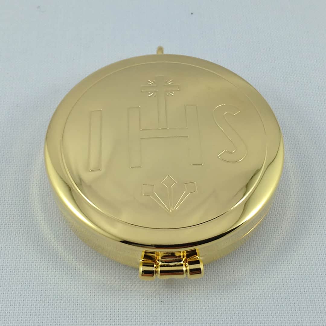 Pyx with IHS Design gold plated Italian made 5.5cm wide x 1.5cm deep