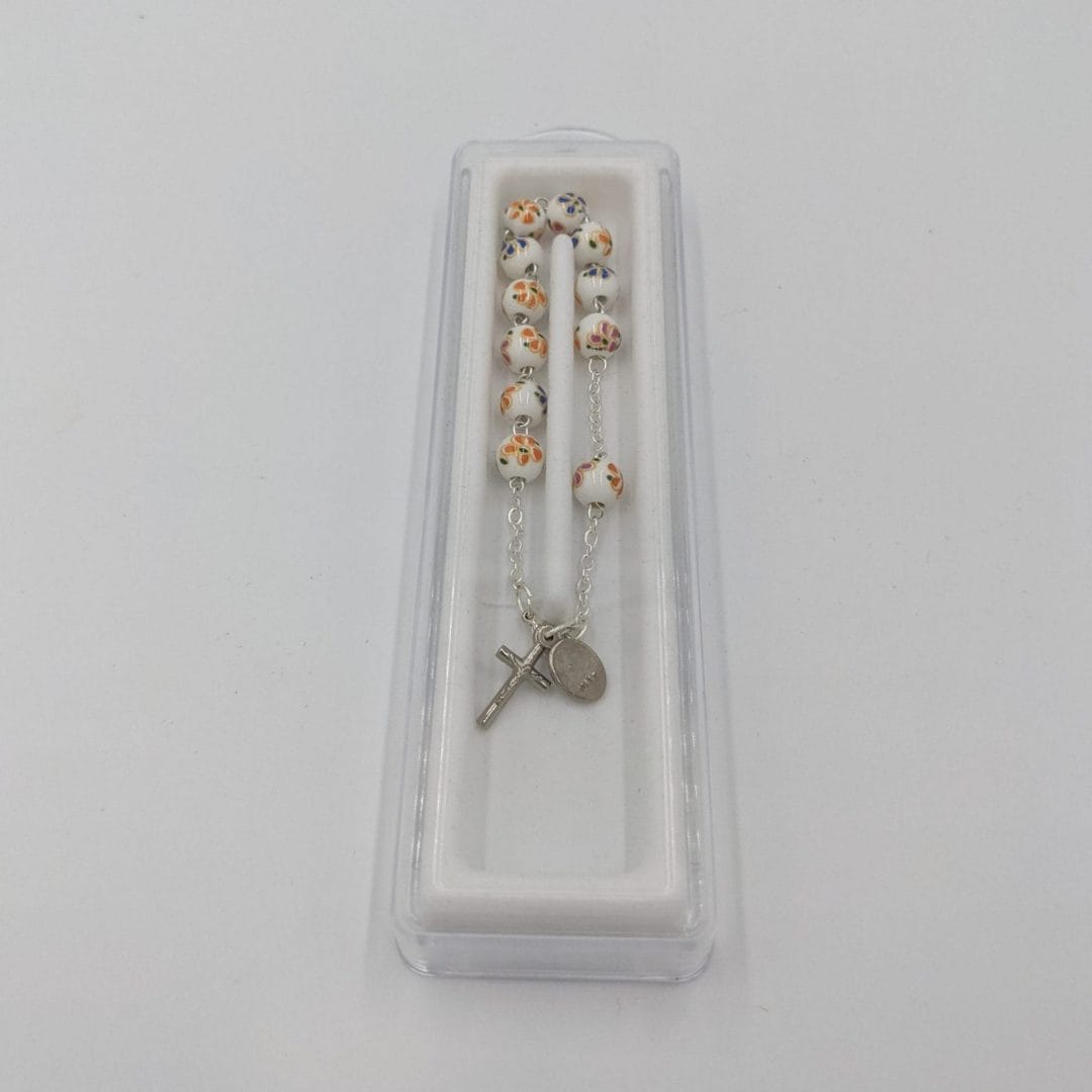 ROSARY BRACELET – WHITE WITH FLOWERS