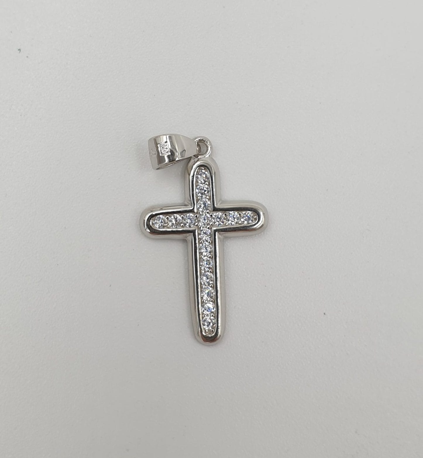 Sterling Silver Cubic Zirconia Encrusted Cross- Dimensions 2cm x 1.3cm. Sterling Silver Chains are also Available.